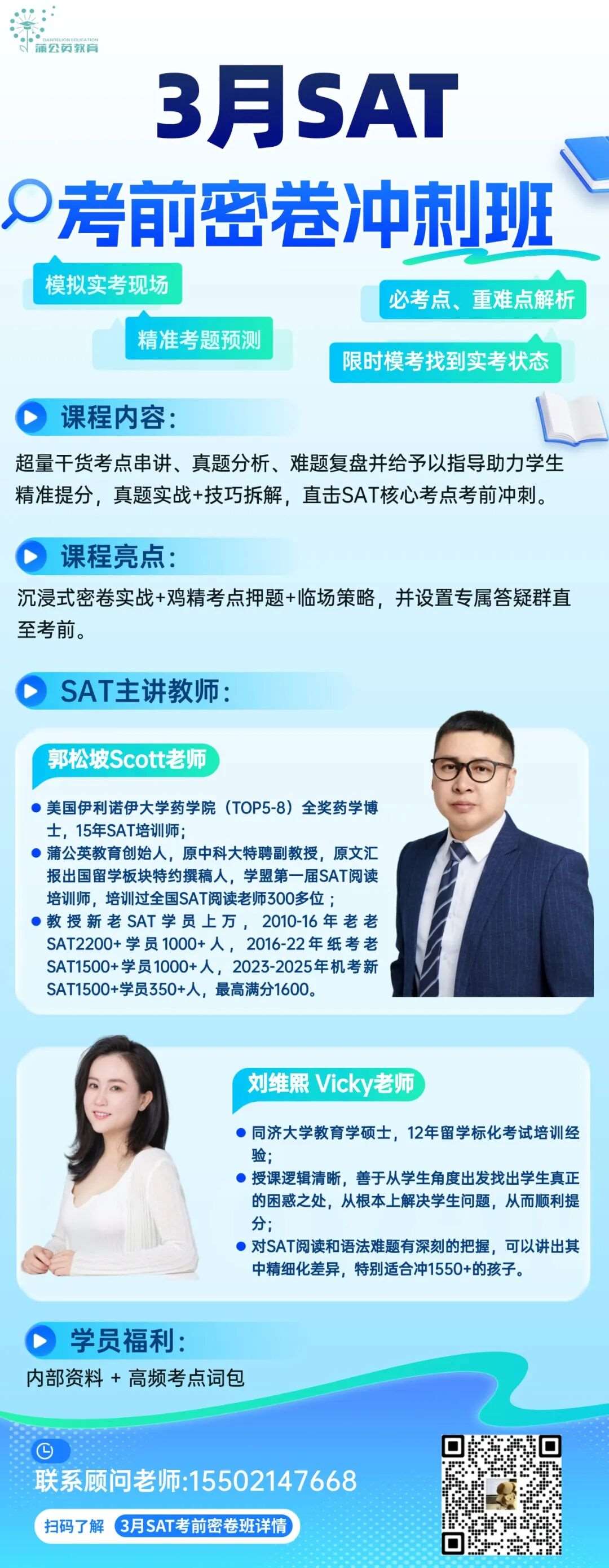 现在,距离3月考试不到一个月了。别让犹豫耽误了你的未来!加入蒲公英SAT考前密卷冲刺班,用科学的3月SAT考前备考攻略,冲刺属于你的1500+高分!