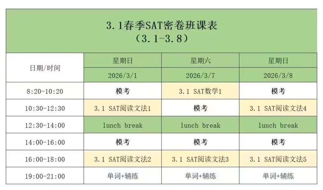 针对这些痛点,上海蒲公英教育针对3月SAT考试特别推出SAT考前密卷冲刺班,专为冲刺3月考试的同学量身定制: