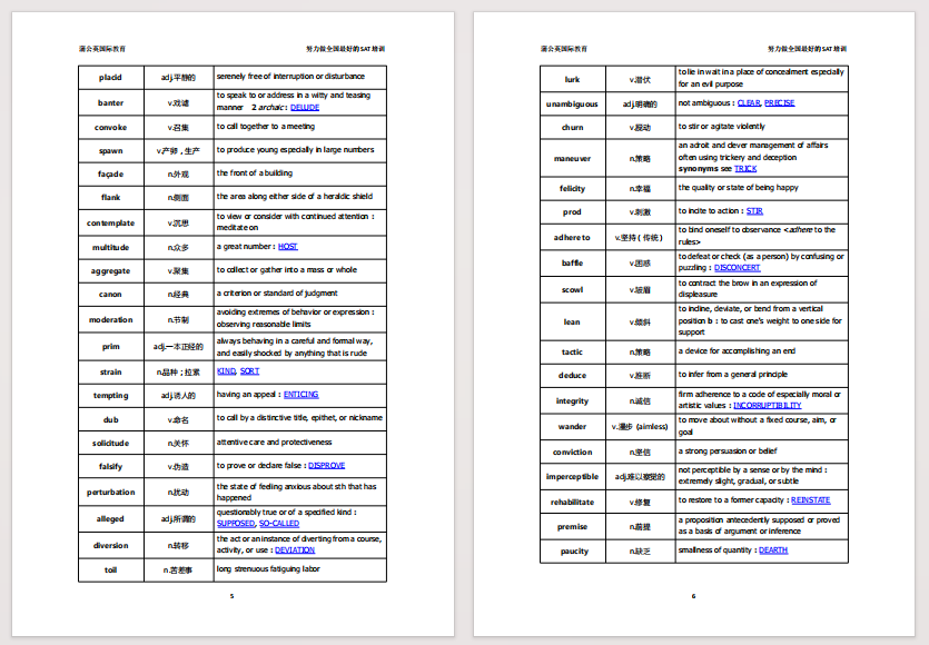 这份浓缩精华的单词资料,我们已整理成SAT单词词汇pdf,方便大家打印背诵、手机随时看。SAT单词词汇pdf里按真题频率排序,标注考点释义与韦氏同义词,不用自己整理,直接开背。