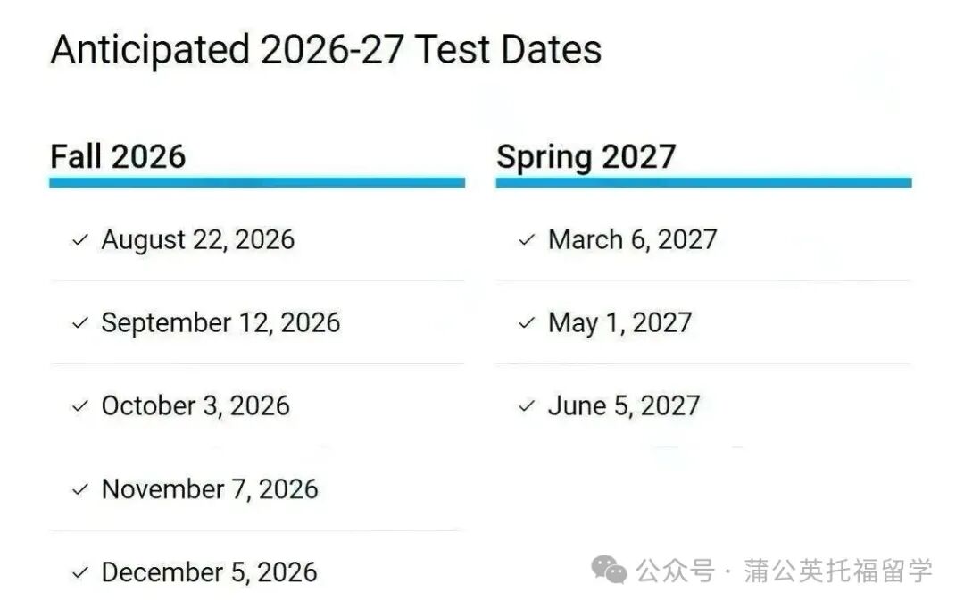 最新2026下半年-2027上半年SAT考试时间安排如下 👇