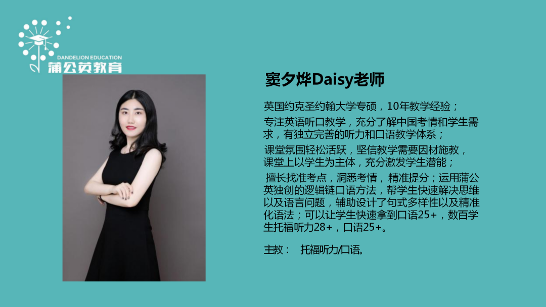 蒲公英新托福师资组: