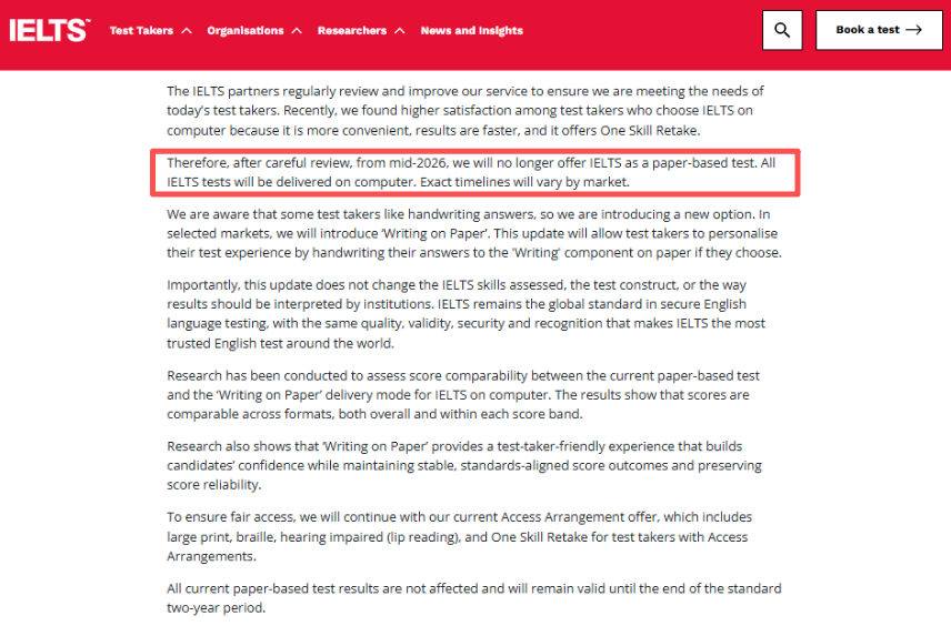 【最新!】雅思官宣:2026年年中起全面取消雅思纸笔考试,进入机考时代!
