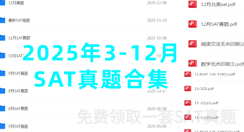 今天重磅备考福利 ——2026年SAT机考真题大全已全部整理完毕!涵盖机考高频真题、密卷(多数机构未收录,实考命中*更高),所有资料均配套高清完整版真题答案,解析详实、排版清晰,3月SAT真题答案pdf下载可直接打印刷题,省去整理麻烦~