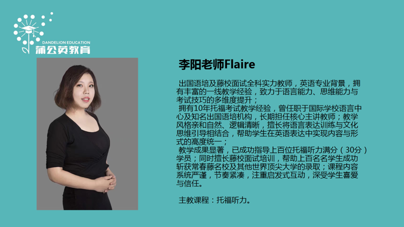 蒲 公 英 教 育 师 资 介 绍
