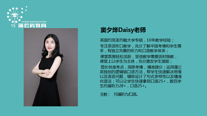 蒲公英教育托福项目组目前合计共有6位老师: