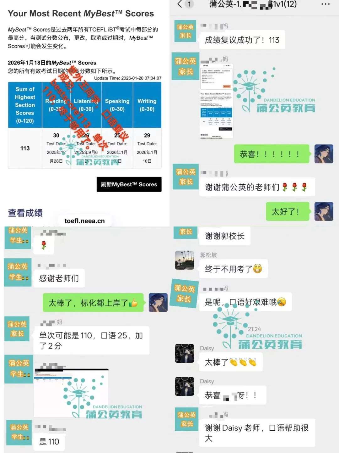 【近期蒲公英托福优秀学员部分展示】