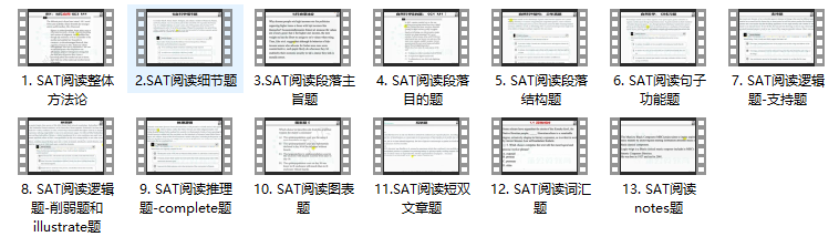 SAT高分备考线上课程将SAT阅读/语法难点梳理为清晰的知识点,每节课聚焦一个核心考点: