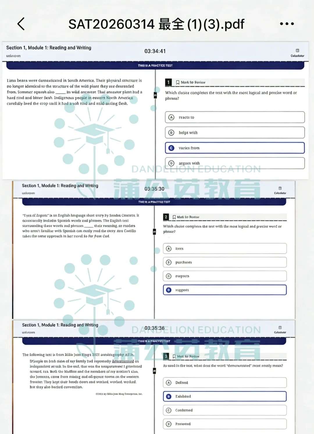 5月SAT考试的你一定要刷这套真题!2026年3月SAT真题答案pdf及解析!!超全最新的SAT北美亚太真题卷汇总,包括准确答案及解析,认准上海蒲公英教育!pdf版本汇总来啦~~