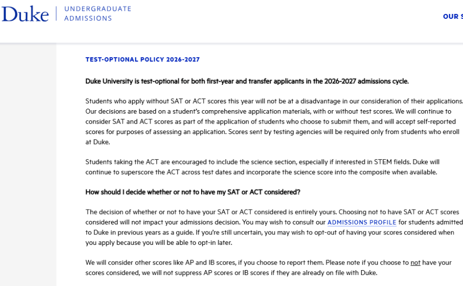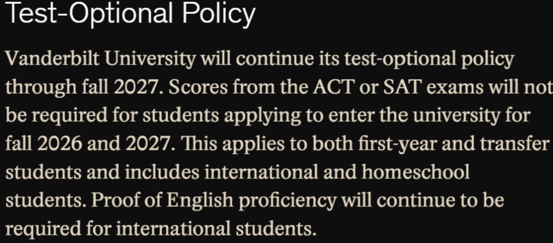 正当大家还在紧张等待 26Fall 常规轮放榜之际,普林斯顿、杜克、范德堡等七所美国学校,已率先公布了 27Fall 申请季的标化最新要求。
