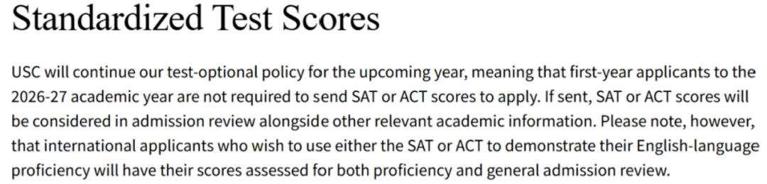 27Fall 全面实行标化可选,覆盖新生、转学生、国际生及自学申请者,无特殊限制条件。