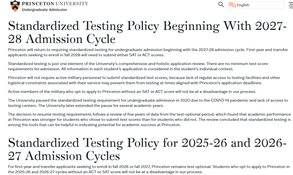 重磅!普林斯顿/杜克等7所TOP学校27Fall最新标化政策出炉!附9-12年级SAT备考规划指南