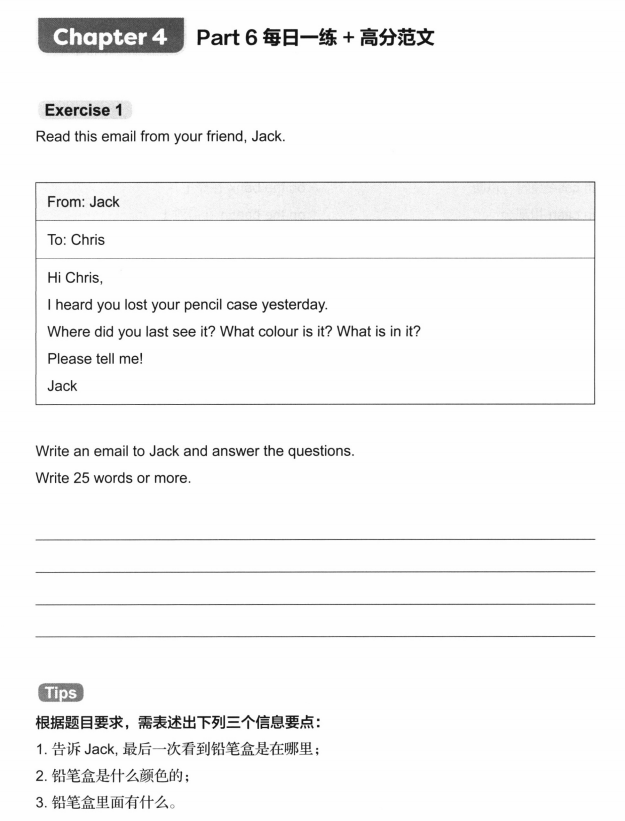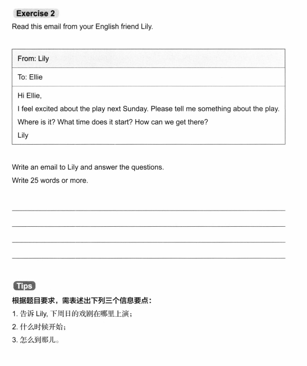 KET写作包含2 篇作文,每篇满分15 分,总分30分。