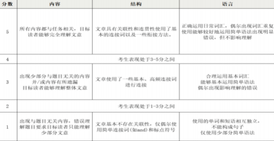 KET写作评分标准