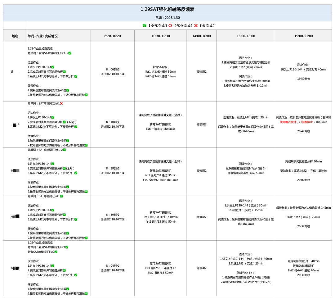 专属班主任一对一督学:每日单词抽测、作业检查、任务提醒,全程跟踪学习状态,帮助学员高效利用时间、落实每日学习目标。