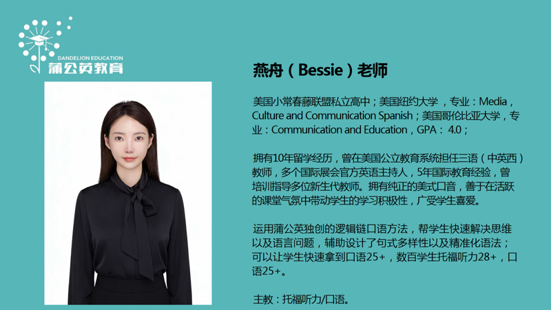 15年教学经验老师亲自授课,精准攻克听力长难句、口语流利度、写作逻辑等核心痛点,上海蒲公英教育,众多国际学校学霸的选择之地,助力学员高效出分,抢占申请先机!