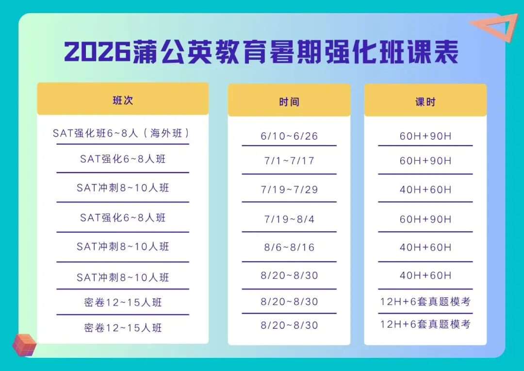 学SAT就来蒲公英,郭博士团队亲自授课,暑假班开放报名,3月底早鸟优惠报班中