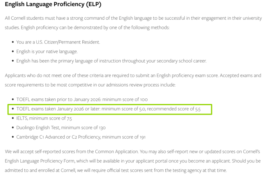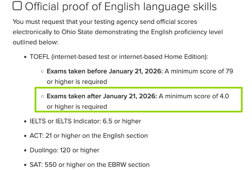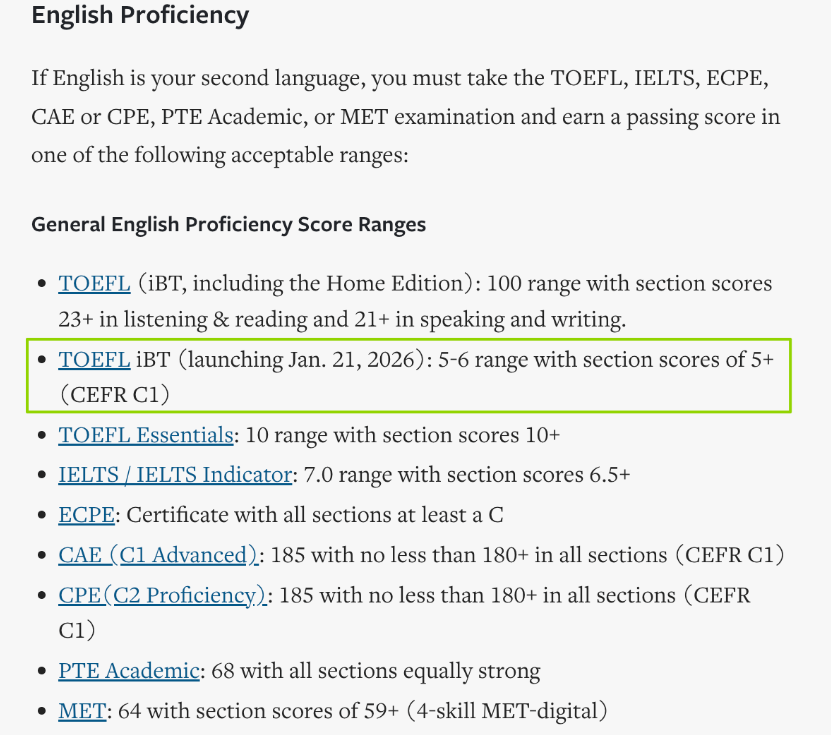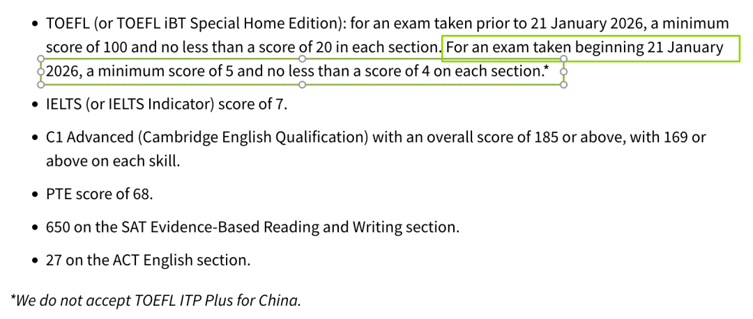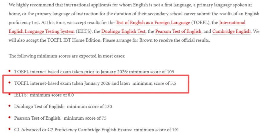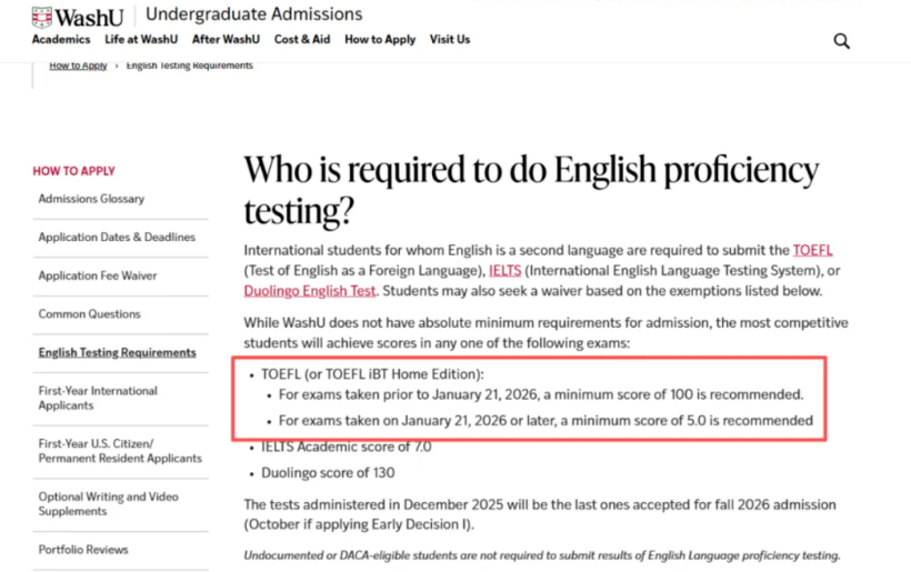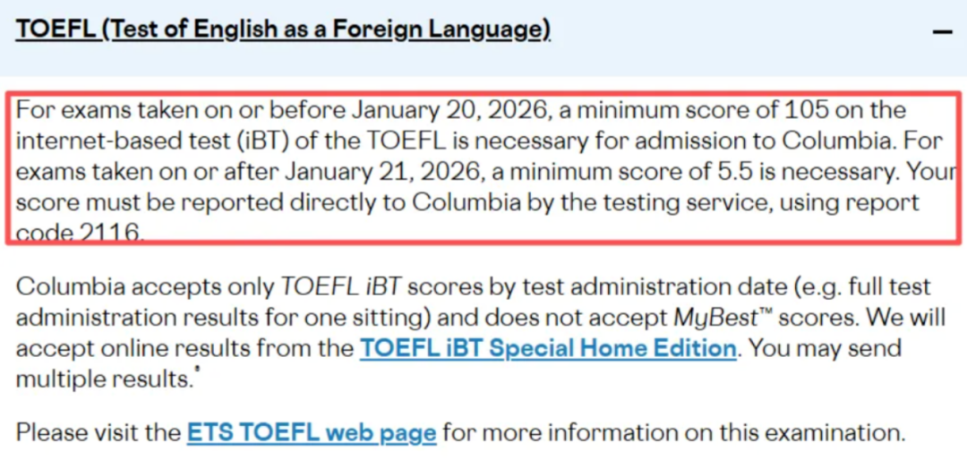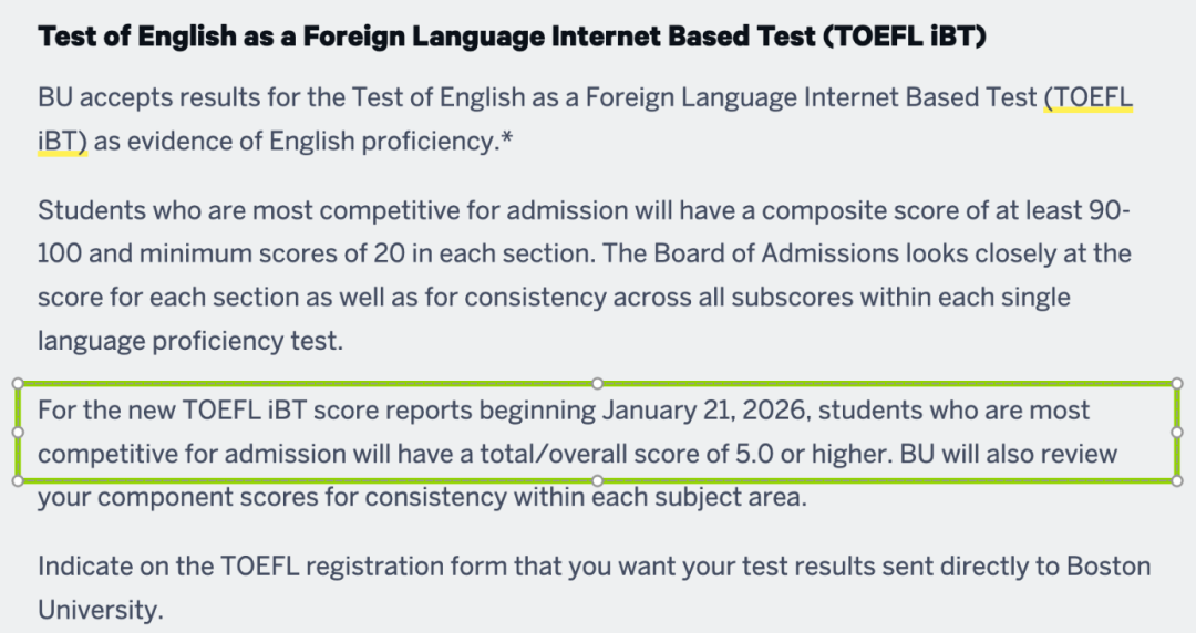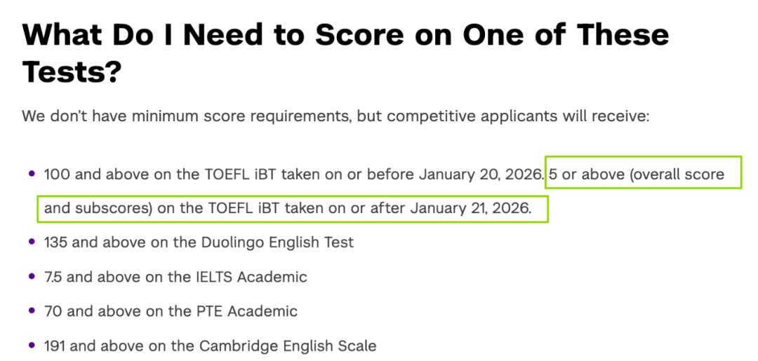 2026年1月及以后考试:新托福*低5.0分,建议5.5分