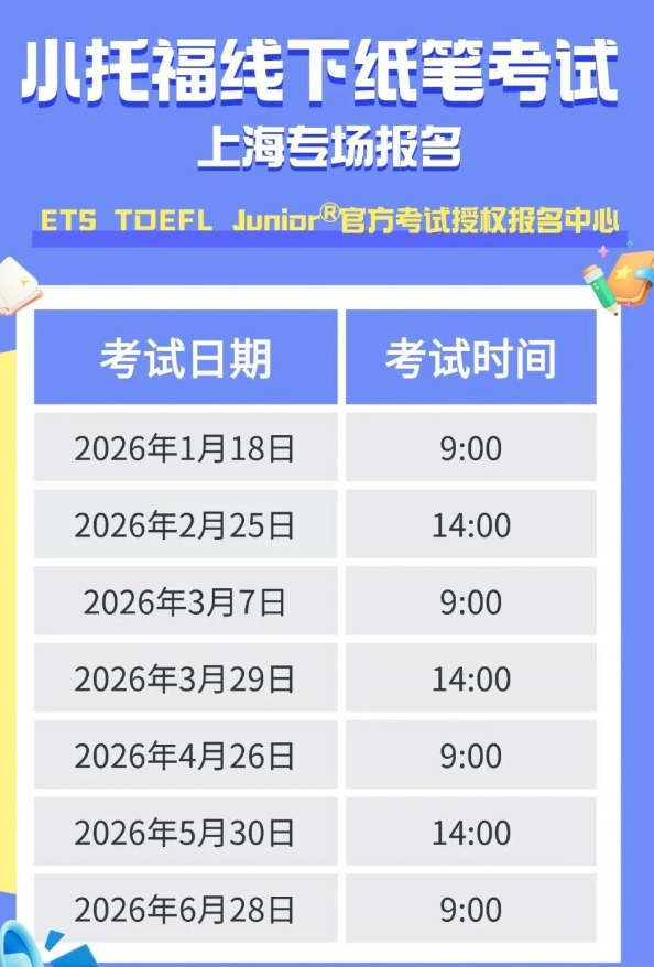 2026年小托福考试时间节点,如果备考感觉有些吃力,不妨了解一下专业的培训班哦~这里有高效的学习方法和老师指导,或许能帮你更快突破瓶颈!👇👇