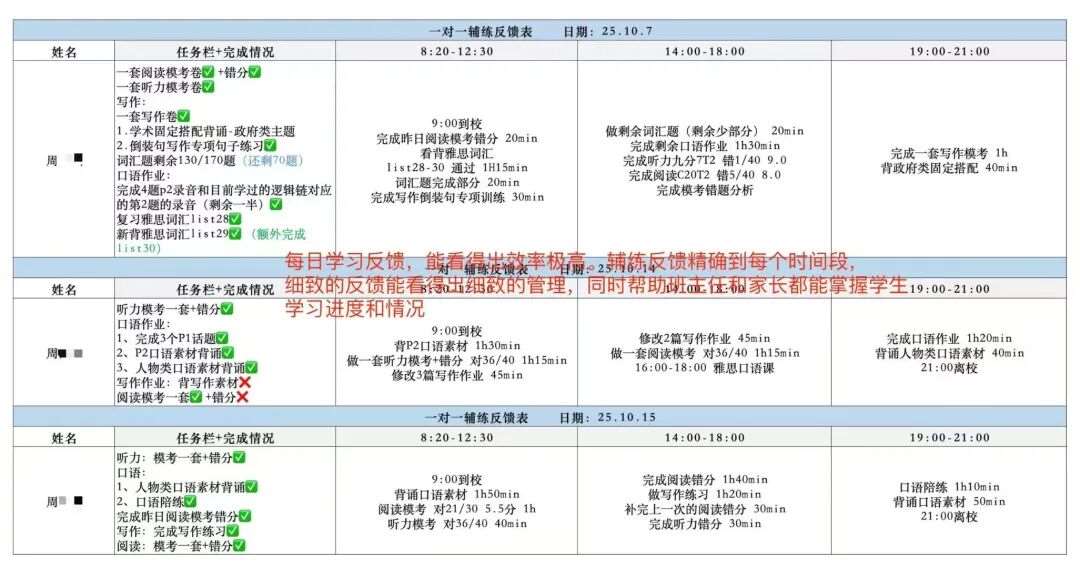 专属班主任一对一全程贴身督学管理:每日定时单词抽查检测、课后作业严格核查把关、学习任务贴心提醒督促,实时跟进学员全程学习状态,助力高效利用碎片时间,稳稳落地每日学习目标。