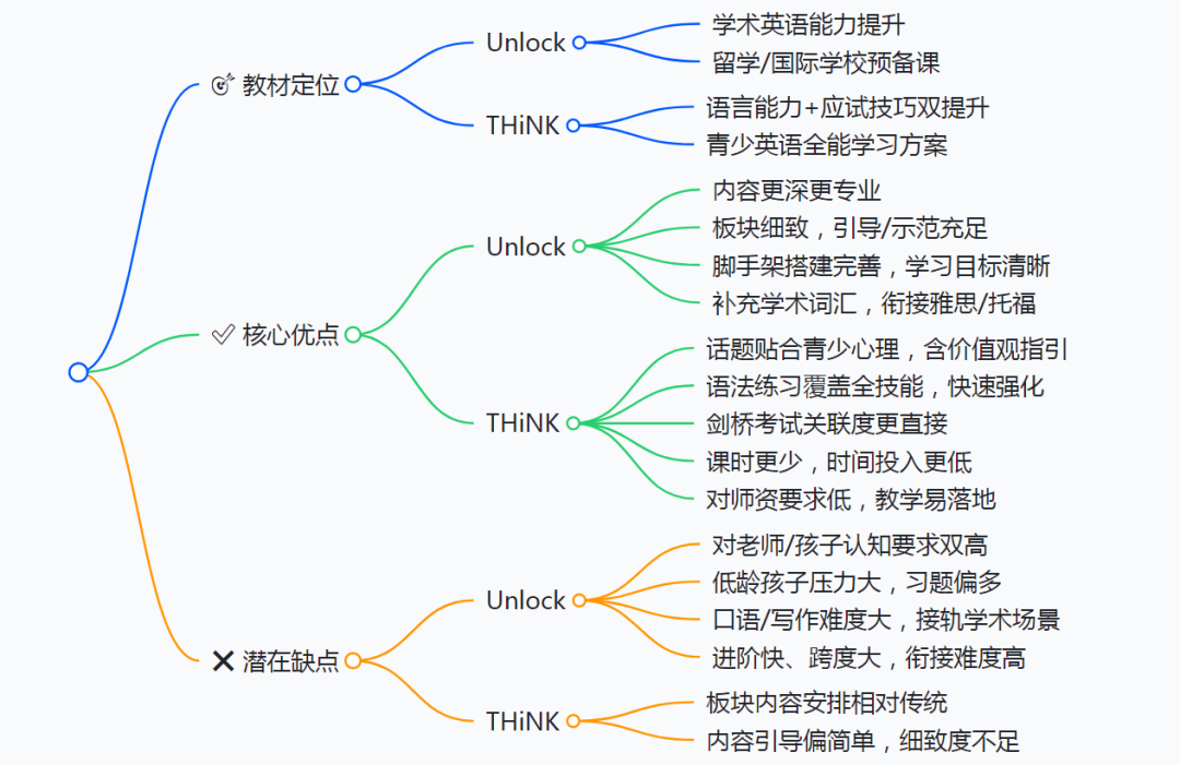 出国路线(考雅思托福)→ 选Unlock,全面深入; 应付中高考→ 选Think足够,别浪费时间在多余内容上。