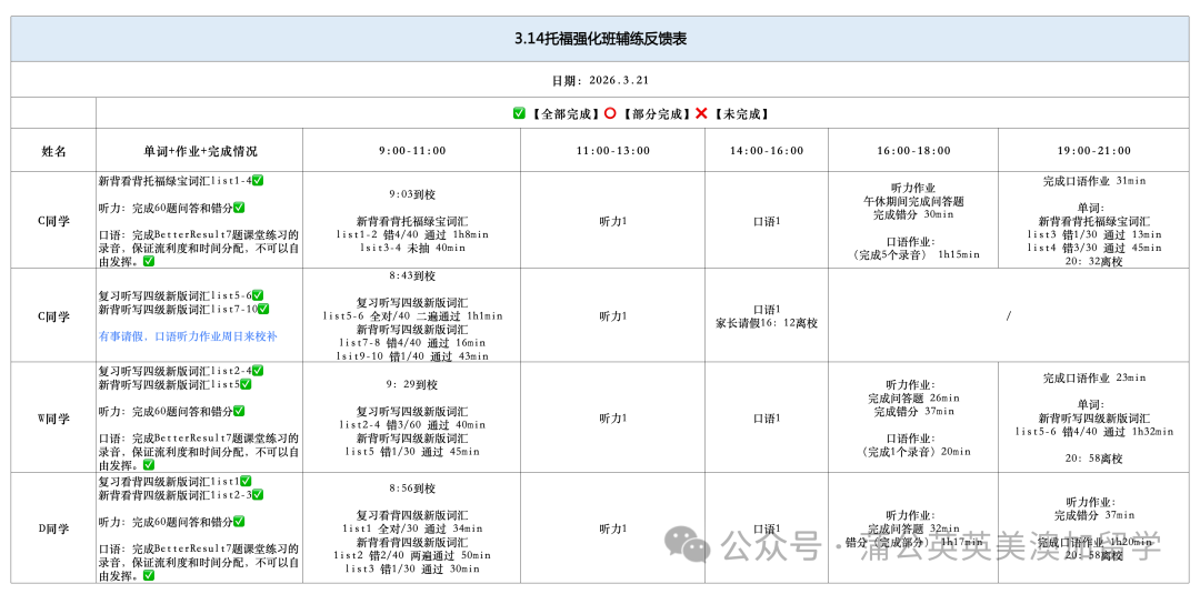 单词拼写、听力精听,到口语纠音、写作精批,所有问题当天发现、当天解决、当天巩固,彻底杜绝拖延与遗漏。
