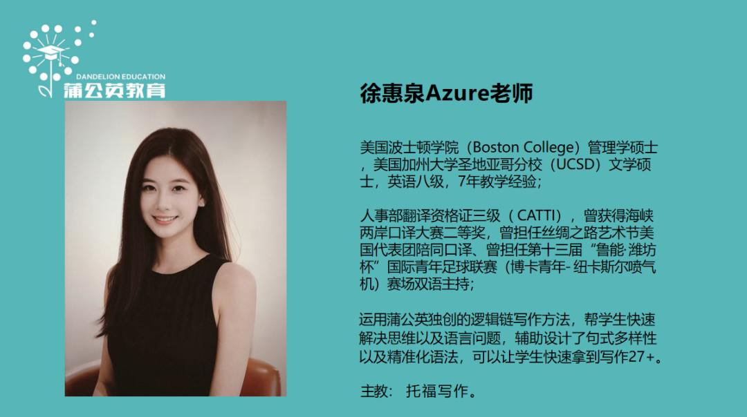 蒲公英部分师资介绍