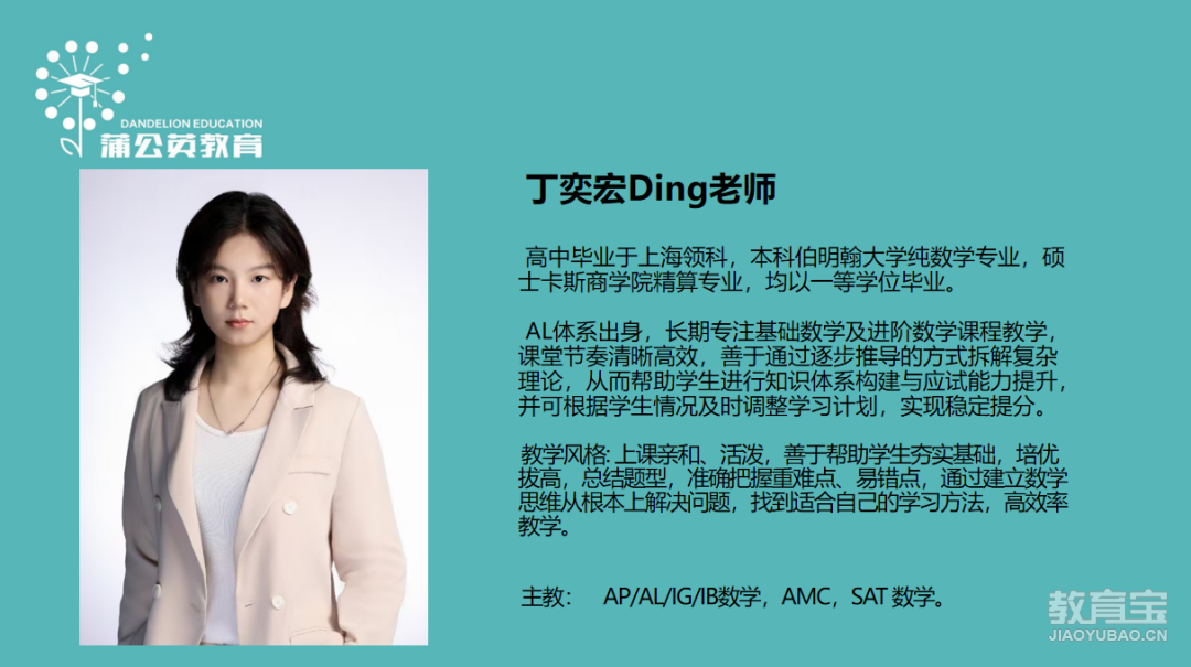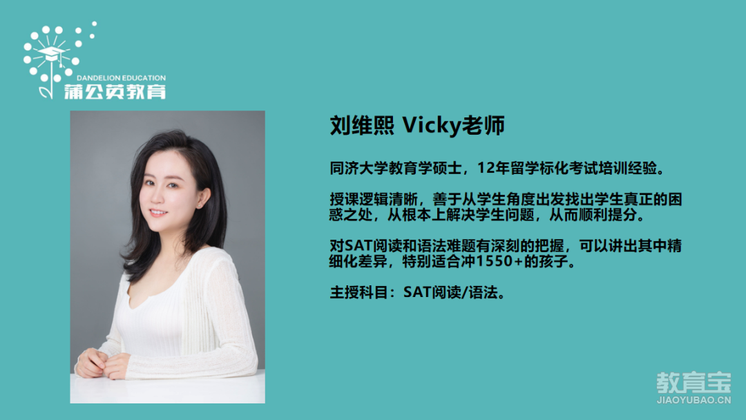 蒲公英教育SAT项目组目前合计共有4位老师:
