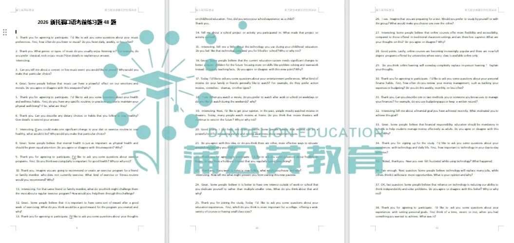 其实托福口语备考有明确章法,上海蒲公英国际教育专为初高中托福考生整理【新托福口语考前48题精选题】,搭配官方核心技巧,科学备考、高效冲分!