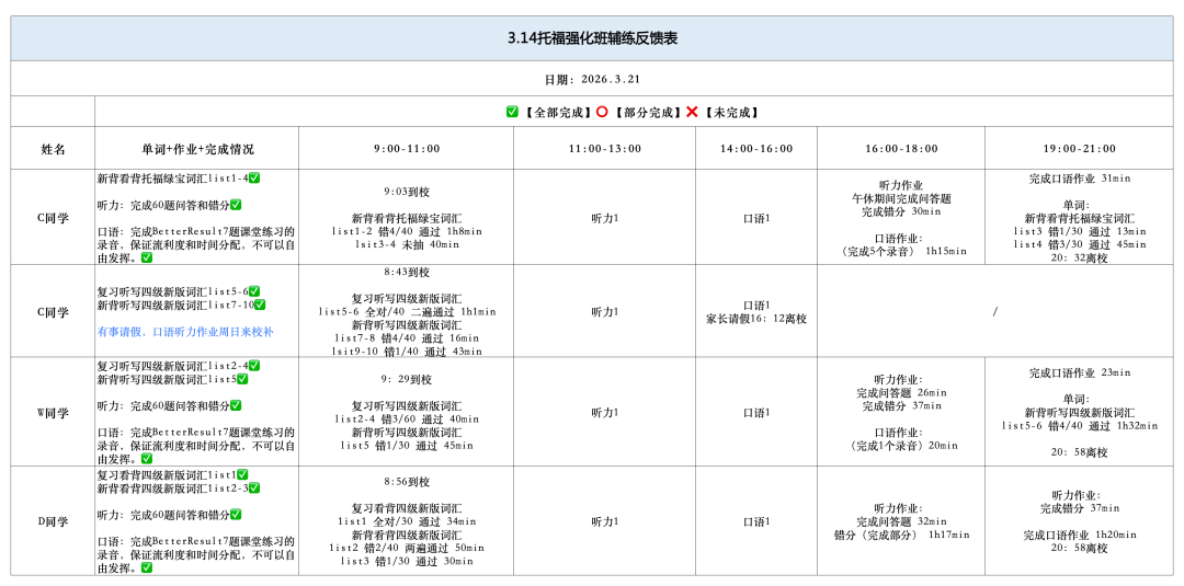 • 每日监督:单词打卡、作业提交、辅练完成,杜绝偷懒摆烂;
