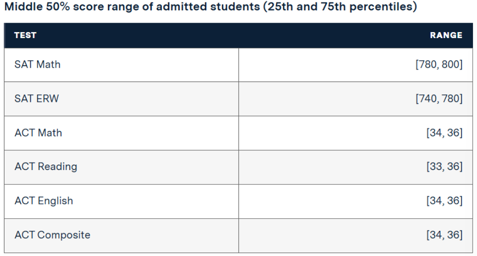 纵观近年录取趋势,MIT 新生的标化分数常年稳居水准,门槛居高不下。参考近几届录取学生分数区间:2027 届、2028 届、2029 届录取者 SAT 读写均分区间稳定在 740–780,段集中于 780–800。