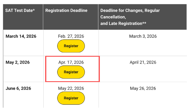 紧急!2026年5月SAT考试报名截止时间就在今天!附SAT新规解析