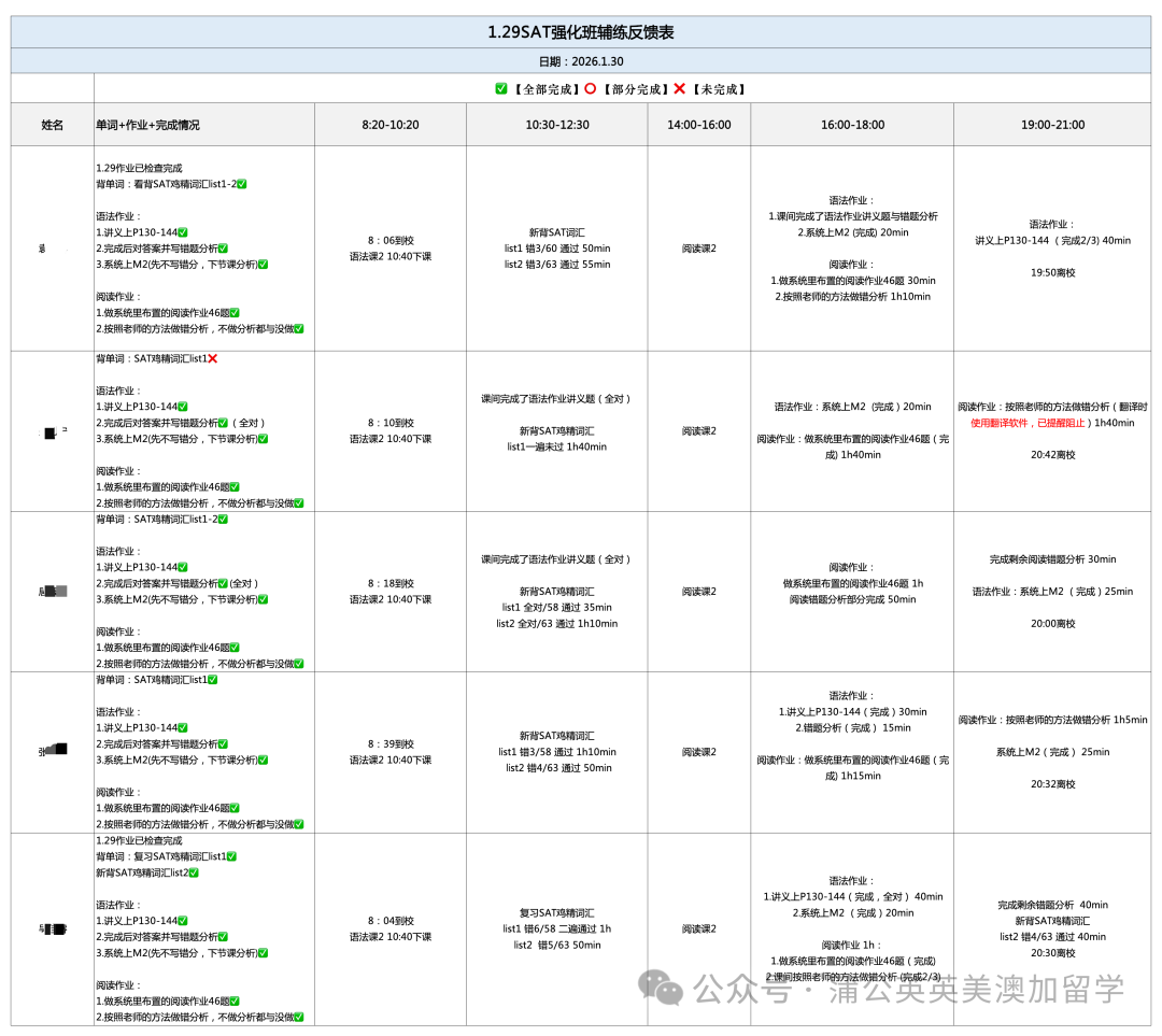 除此之外,专为 SAT 学员开设晨读与晚自习专属服务,营造沉浸式学习氛围,稳步夯实学术能力,帮助学员养成自律高效的备考习惯,稳步冲刺 SAT 高分。
