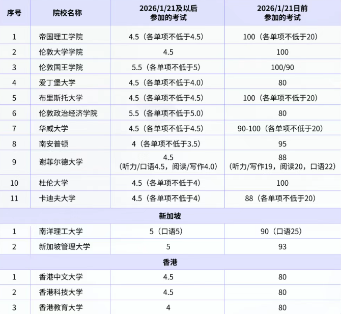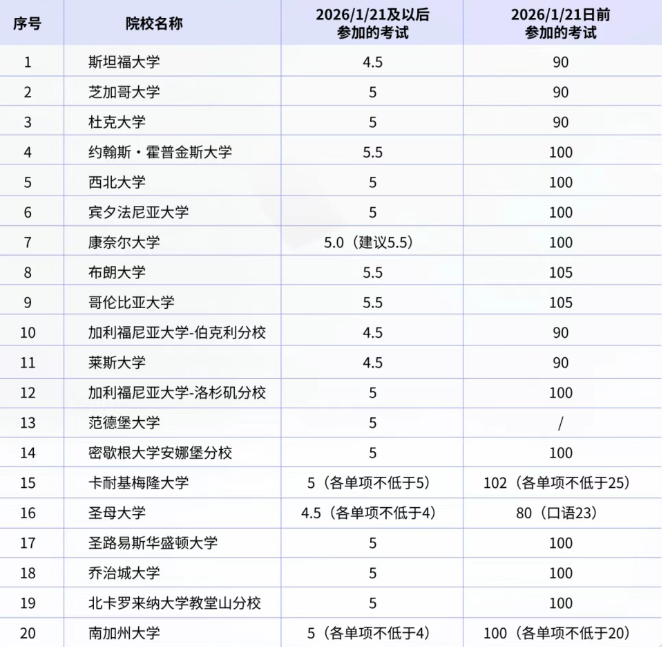 随着新托福改革落地,全球院校也更新了官方的分数要求,结合U.S. News 和QS世界学校的最新政策,我们整理了权威的申请门槛参考:美国2026 U.S.News Top 30院校