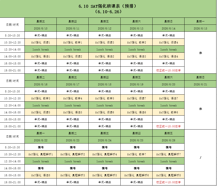 6.10 SAT强化班课表